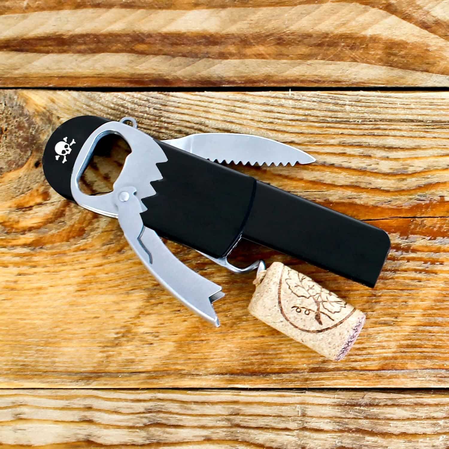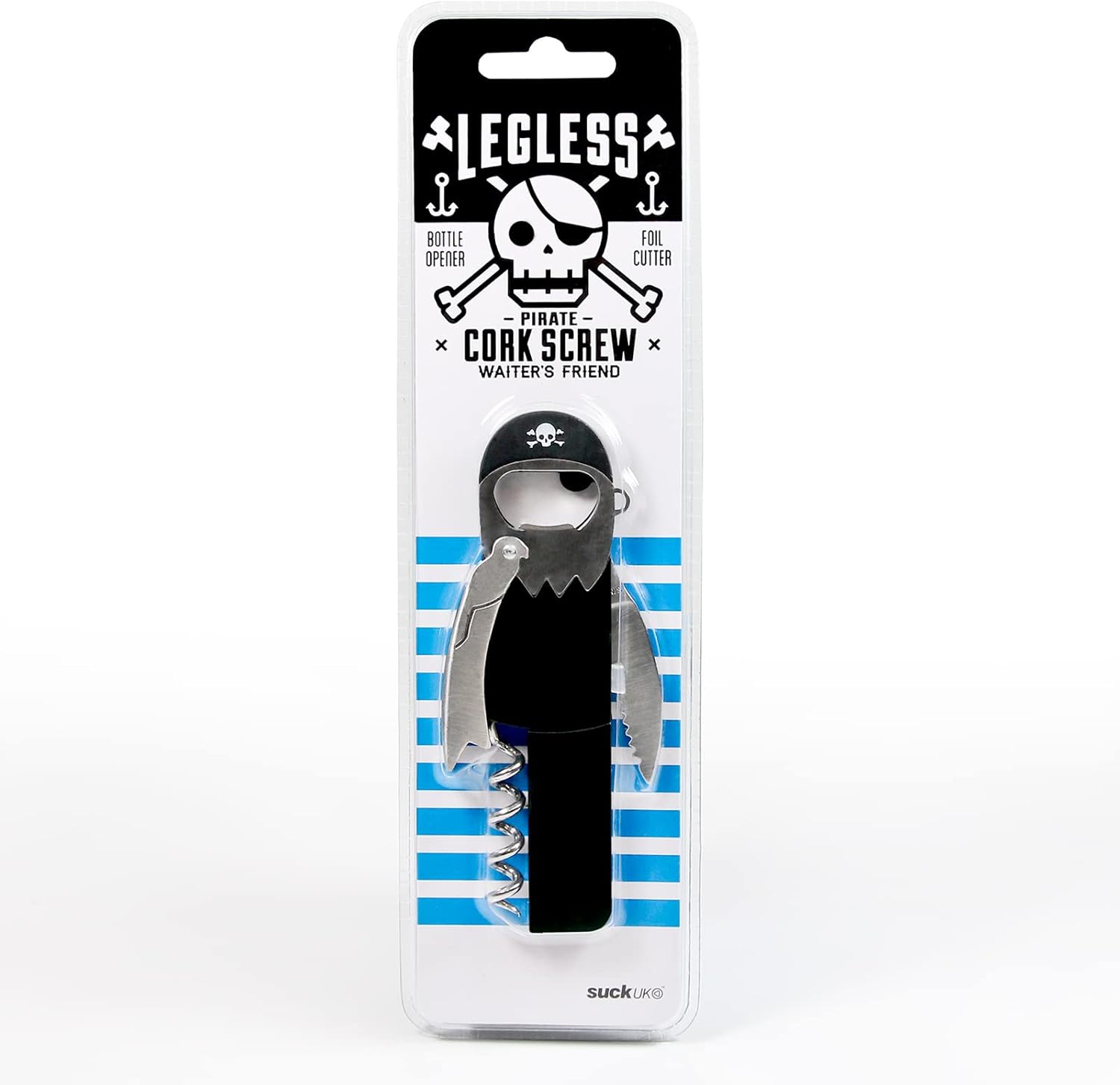 Այս կոմպակտ ծովահեն բացիչը համատեղում է երեք կարևոր ֆունկցիա՝ հարթ գործող խցանահան, սուր փայլաթիթեղ կտրիչ և ամուր գարեջրի շշի բացիչ։ Իդեալական ընտրություն է տան համար։