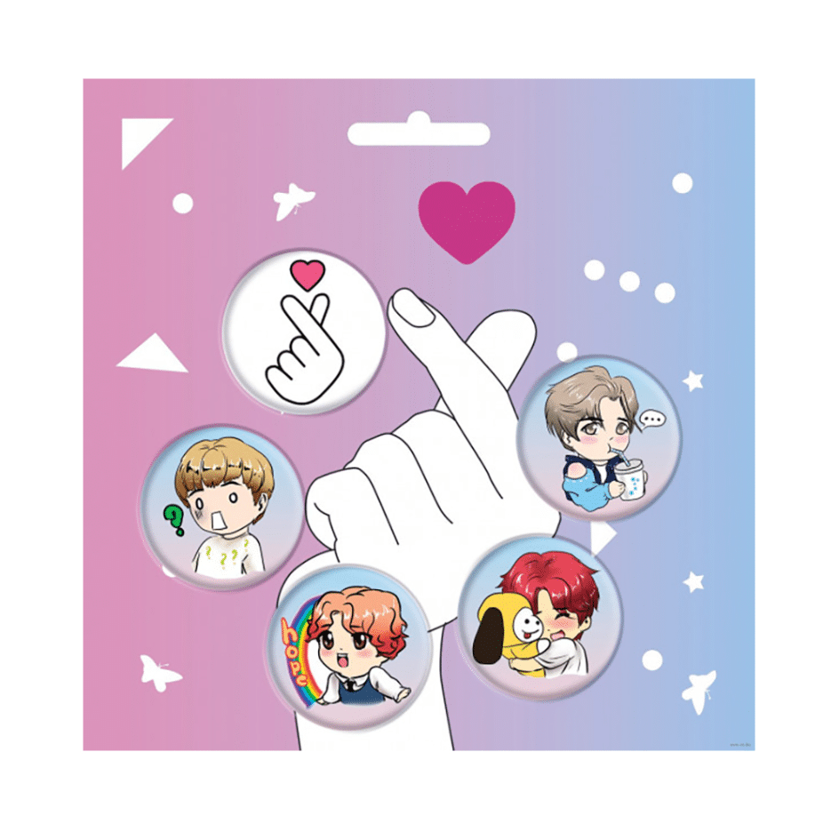 Այս հավաքածուն ներառում է մի քանի փոքրիկ կլոր նշաններ՝ գեղեցիկ և ուրախ դիզայնով։ Յուրաքանչյուր նշան պատկերում է k-pop ոճով կերպարներ և էմոցիաներ՝ արտահայտելով տարբեր տրամադրություններ՝ զարմանք, ուրախություն, սեր և խաղային պահեր։
