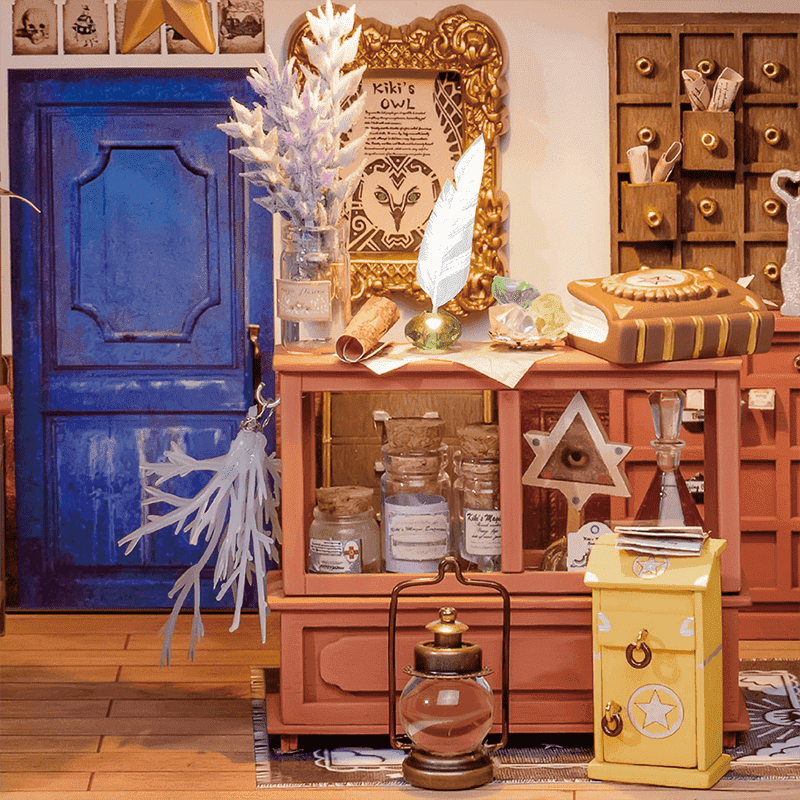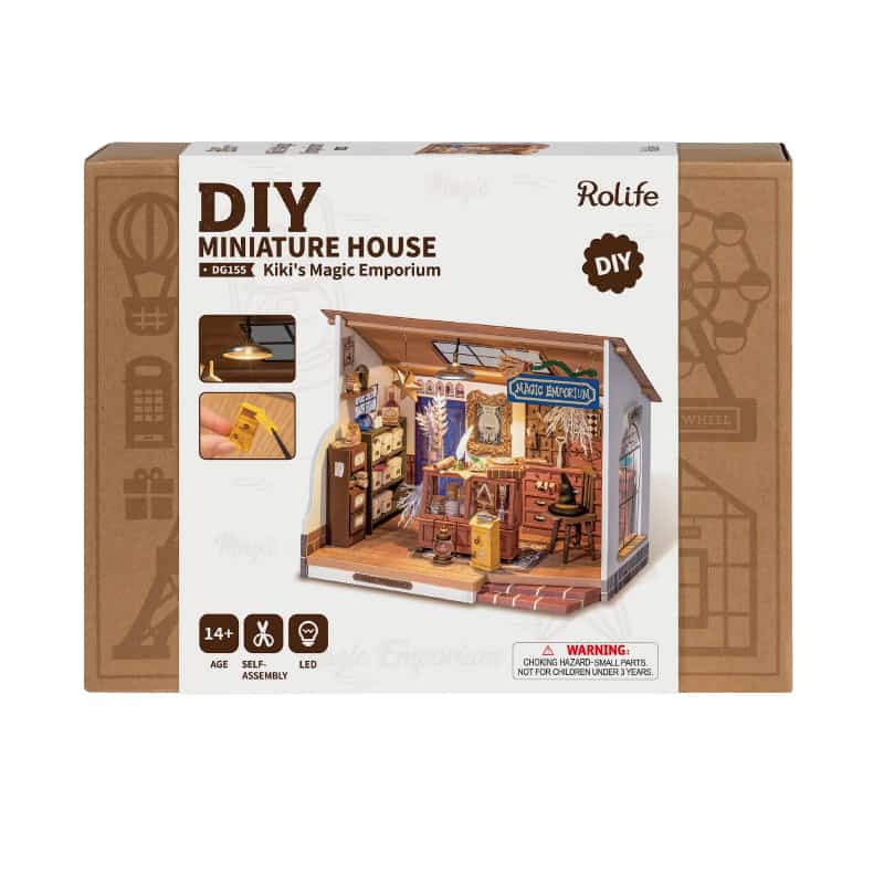 Յուրահատուկ Kiki's Magic Emporium roombox-կոնստրուկտորը հիշեցնում է կախարդի փոքրիկ տնակ: Որպեսզի այս հավաքածուն հնարավորինս իրատեսական տեսք ունենա, կարող եք միացնել լույսերը փոքրիկ LED լամպերով, որոնք ներառված են հավաքածուի մեջ: Այն բազմաթիվ հետաքրքիր դետալներով մանրակերտ է, որը ստեղծում է ջերմ մթնոլորտ: Հավաքածուն հագեցած է բոլոր նյութերով և գործիքներով, որոնք անհրաժեշտ են դեկորատիվ դետալների, սպասքի և կահույքի վերստեղծման համար։