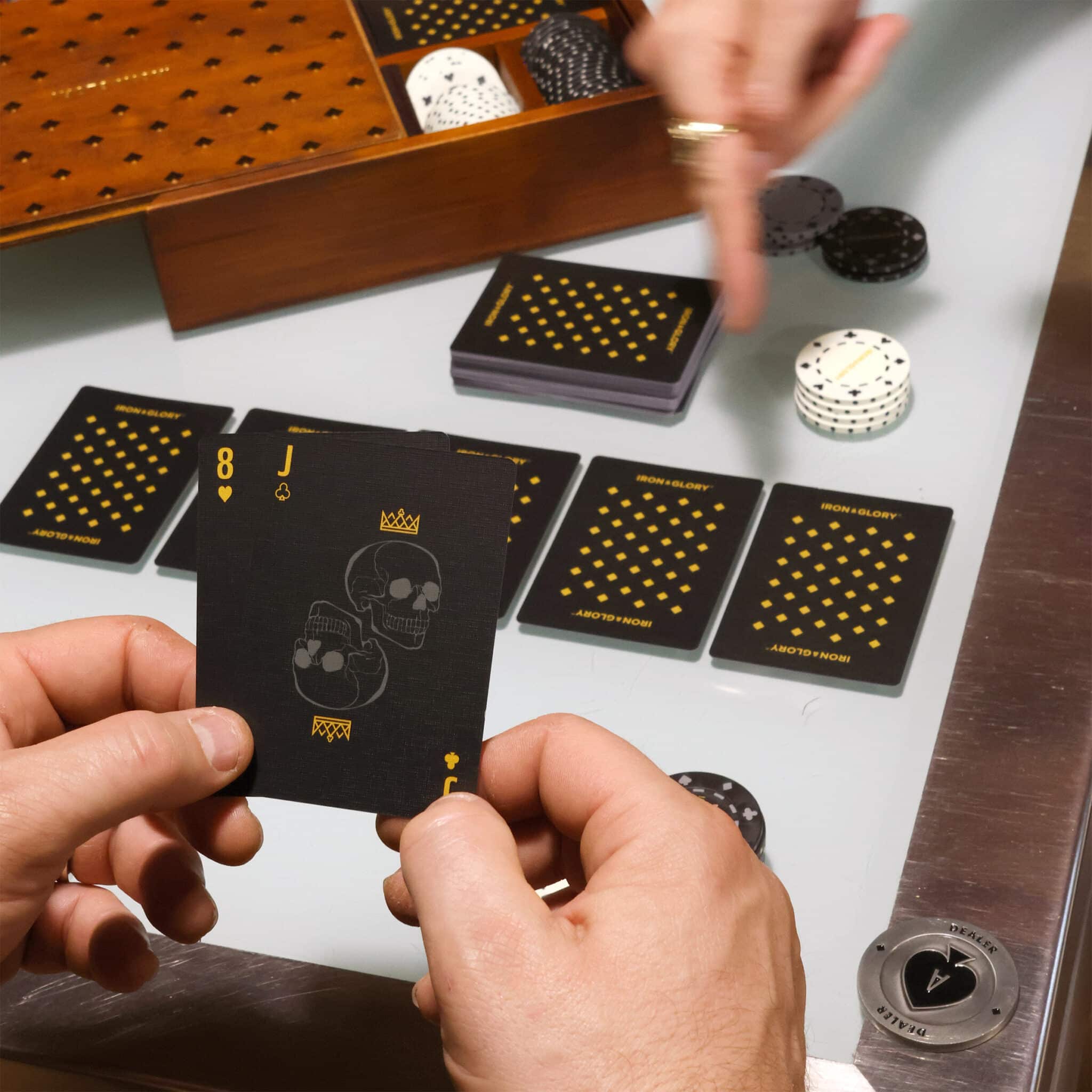 Այս հավաքածուն ներառում է ամեն ինչ անմիջապես խաղ սկսելու համար՝ խաղաթղթեր, 100 հատ հատուկ պոկերի չիպեր և փորագրված մետաղական դիլերի նշան։ Իդեալական է թե սկսնակների, թե լուրջ խաղացողների համար՝ ապահովելով պրոֆեսիոնալ խաղային փորձ։