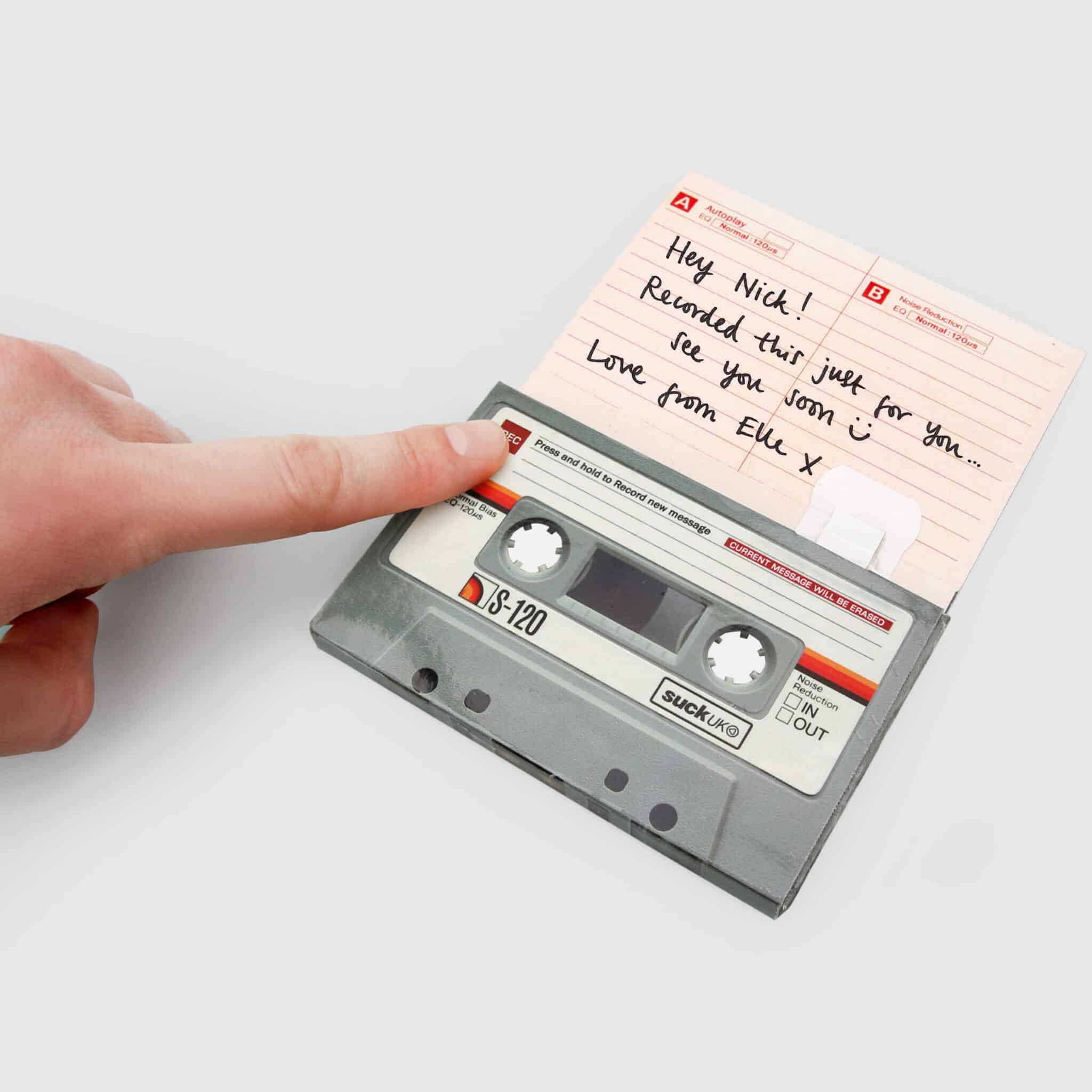 Պարգևեք ոչ միայն խոսքեր, այլ նաև զգացմունքներ։ Այս յուրահատուկ կասետա-ոճի բացիկը ունի ներկառուցված ձայնագրիչ, որը թույլ է տալիս ձայնագրել մինչև 2 րոպե տևողությամբ հաղորդագրություն, երգ կամ հիշողություն։ Բացելու պահին այն ինքնաբերաբար նվագարկվում է՝ ստեղծելով հաճելի ու անսպասելի անակնկալ։