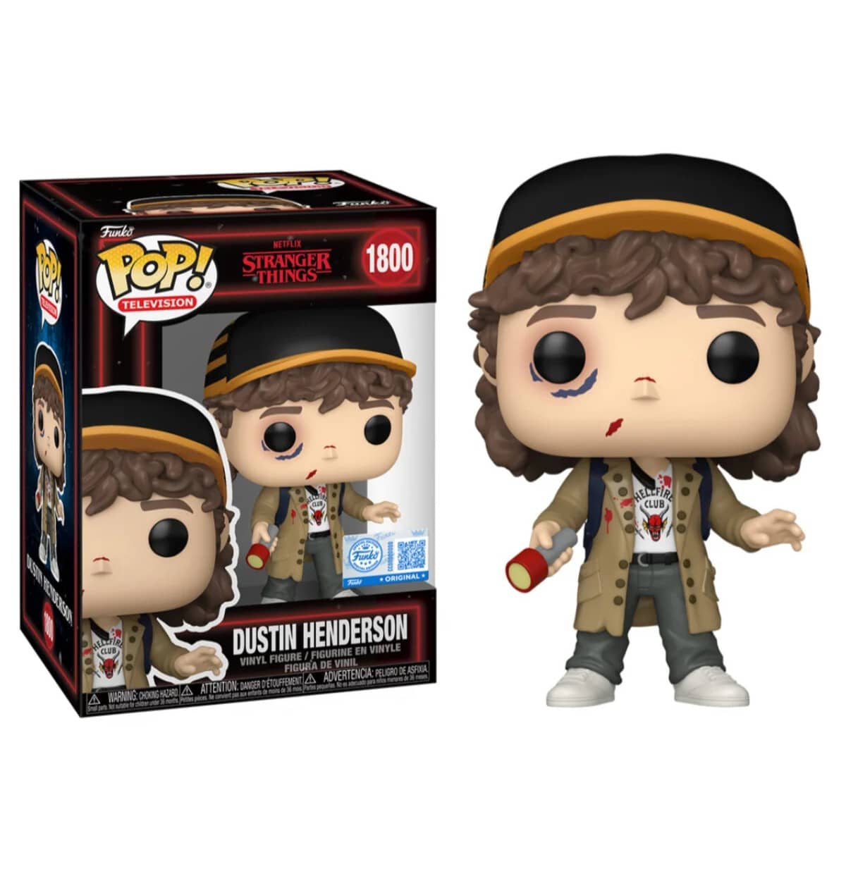 Այս ոճավորված վինիլային ֆիգուրը ներկայացնում է Դաստին Հենդերսոնին մարտից վնասված տեսքով՝ փոխանցելով կերպարի արկածային և հերոսական բնույթը։ Funko-ի ֆիրմային դիզայնը՝ մեծ գլուխ և արտահայտիչ աչքեր, համադրված է մանրակրկիտ դետալներով, որոնք ֆիգուրին տալիս են առանձնահատուկ տեսք։