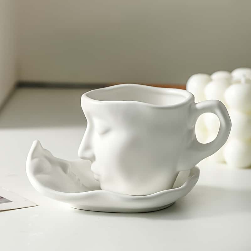 Այս սուրճի հավաքածուն, որը բաղկացած է 250 մլ ծավալով բաժակից, ափսեից և թեյի գդալից, կստեղծի յուրօրինակ մթնոլորտ ձեր տանը: Դուք կարող եք ստեղծել ձեր սեփական բացառիկ և տարբերվող ճենապակյա թեյի կամ սուրճի հավաքածուն: Այս հավաքածուն առանձնանում է օրիգինալ դիզայնով, որտեղ դեմքերը նայում են միմյանց բաժակից և ափսեից, կարծես արտացոլվում են ջրի մակերեսին կամ նայում են միմյանց հայելու մեջ: