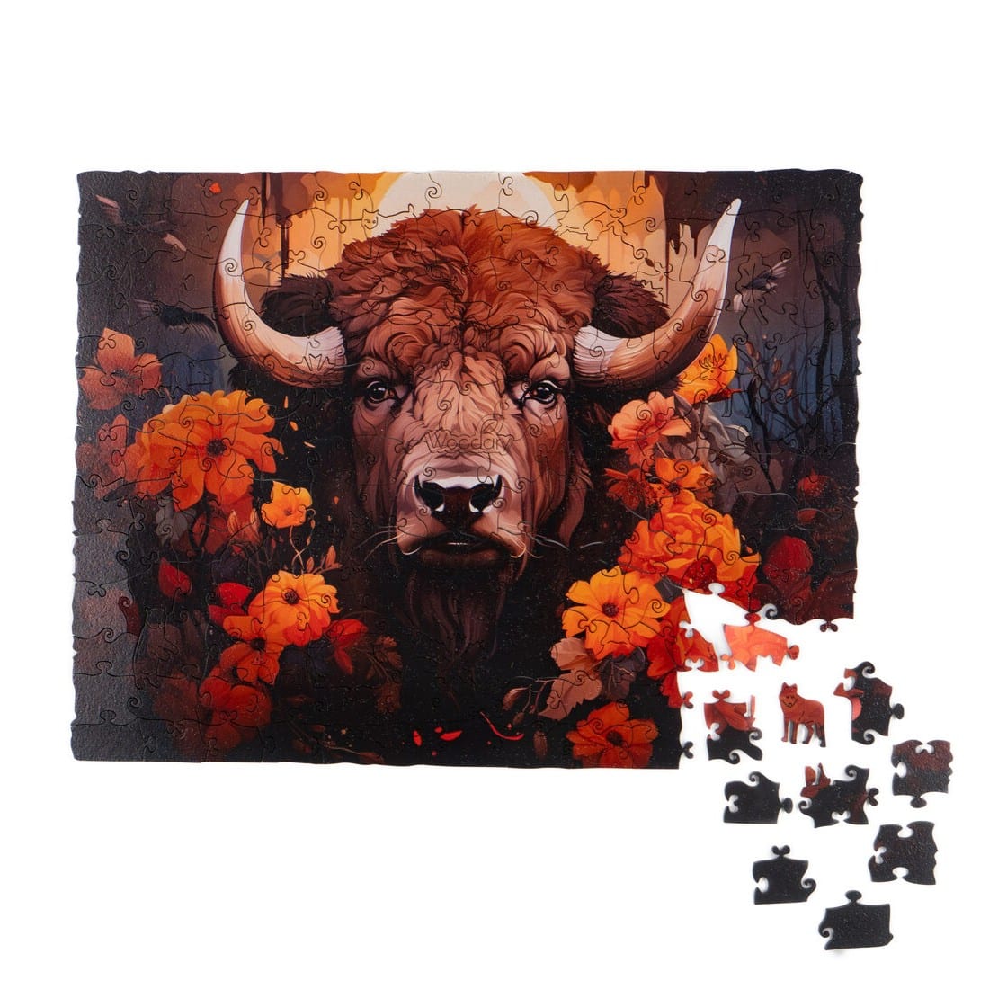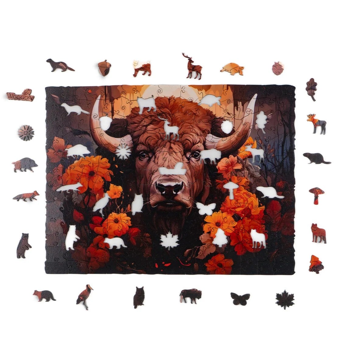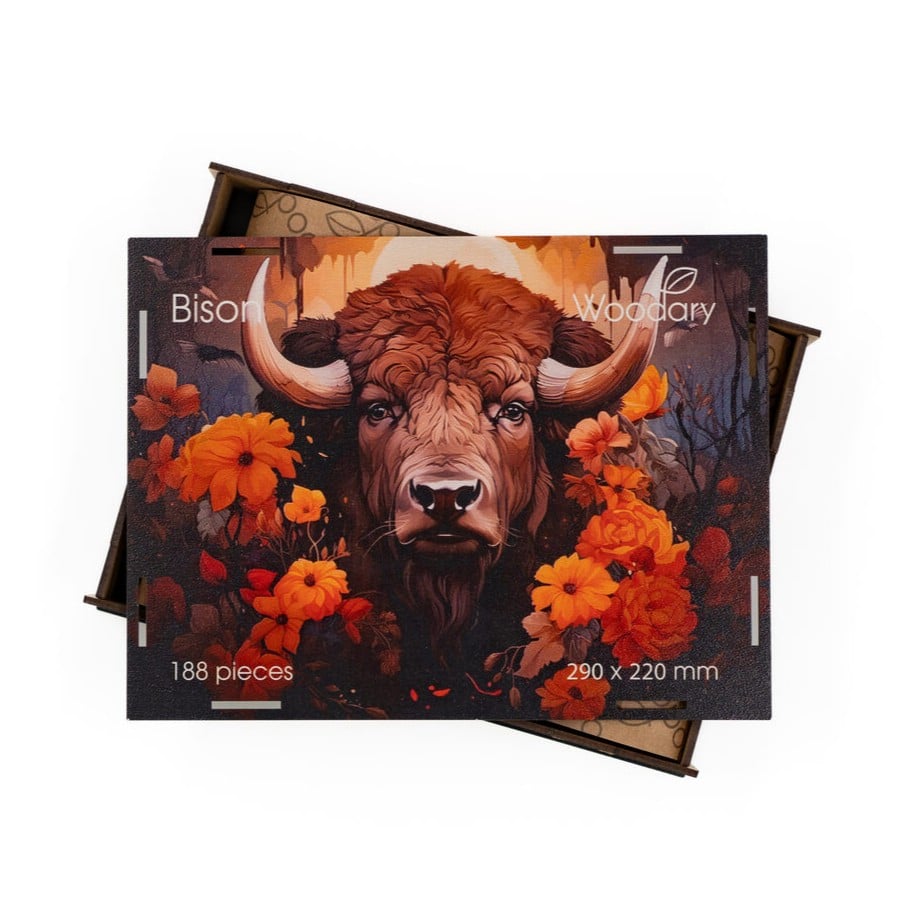 Ձեզ ենք ներկայացնում բիզոնի պատկերով փայտե փազլ, որը պատրաստված է բացառապես էկոլոգիապես մաքուր նյութերից։ Գույնզգույն այս փայտե փազլը հավաքելիս սովորական դետալներից բացի դուք կնկատեք նաև մի շարք առանձնահատուկ դետալներ՝ կենդանական աշխարհի հետ կապված մոտիվներով: Փայտե փազլի մանր դետալները (188 դետալ) կօգնեն զարգացնել մանր մոտորիկան և տրամաբանությունը, իսկ գլուխկոտրուկը հավաքելիս ծախսված ժամանակն աննկատ կթռչի: Չափսերը հավաքած վիճակում՝ 29 х 22 սմ։